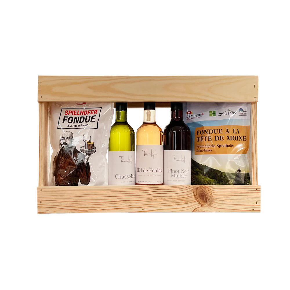 | Set Inhalt | 4 Portionen Fonduemischung, 3x Frauenkopf Weine |
